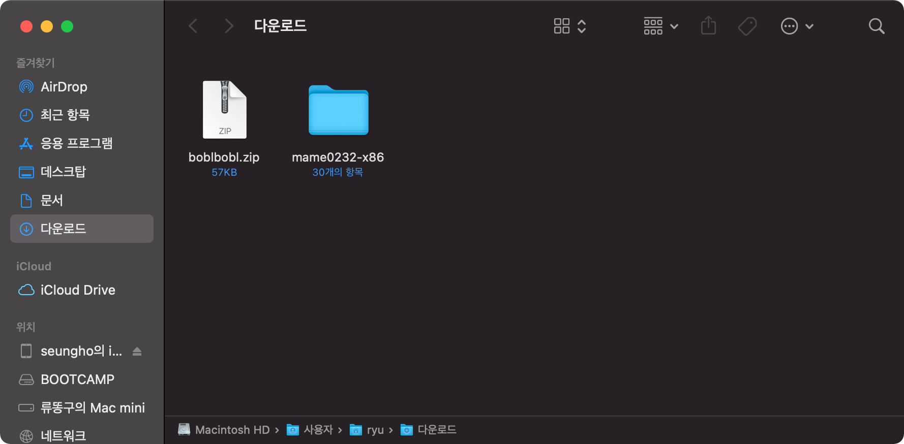 게임 롬 다운로드 완료 다운로드 받은 롬 파일을 마메 디렉토리에 있는 roms로 이동시켜 줍니다.