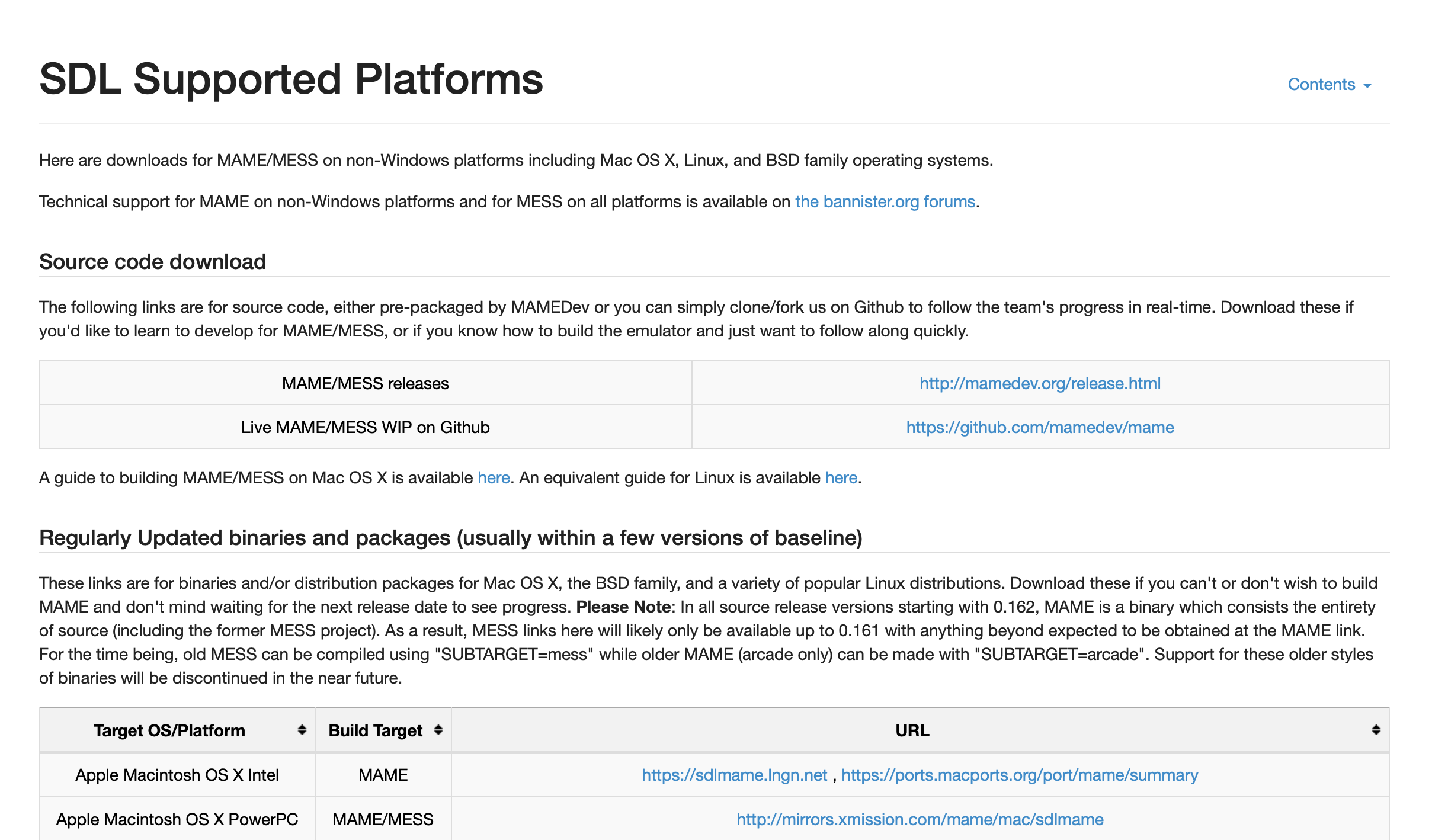 SDL 사용 플랫폼용 다운로드 안내 다운로드 버튼을 눌러서 리다이렉션 된 페이지를 보면 윈도우가 아닌 플랫폼에서는 SDL을 통해 마메를 지원하고 있다고 합니다.