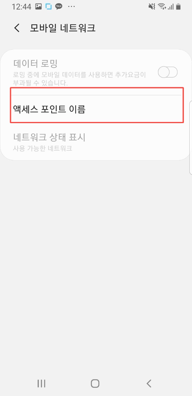 그 다음으로 액세스 포인트 이름으로 들어갑니다.